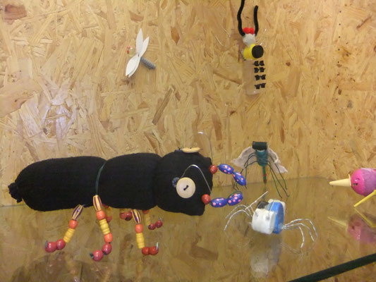 Vous pourrez découvrir en passant devant les salles de Sciences, quelques bestioles insolites réalisées par les classes de 6èmes en cours d'art plastique. Ce sont des insectes qui se camouflent dans un coin de notre maison...à vous de deviner quel endroit. Il suffit de regarder les matériaux choisis par les élèves et vous devinerez quel est le lieu préféré de ces petites bêtes. Les élèves ont également appris la manière de reconnaître un insecte et le nombre de parties dont leur corps est constitué.
